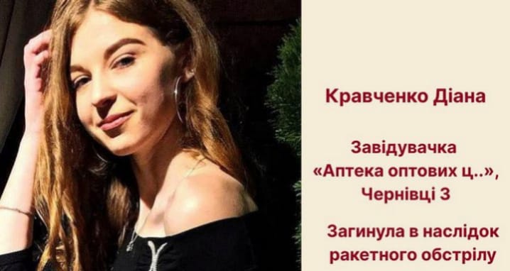 27 липня 2025 року Діані Кравченко, завідувачці Аптеки Оптових Ц.. Чернівці 3, виповнилося б 27 років. Але вночі 12 липня ворожа ракета обірвала життя дівчини.